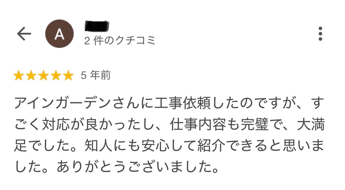 アインガーデンにご依頼頂いただき、誠にありがとうございました!