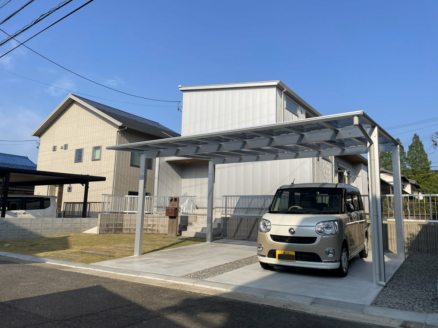 カーポートにはYKKapのエフルージュFirstを設置。